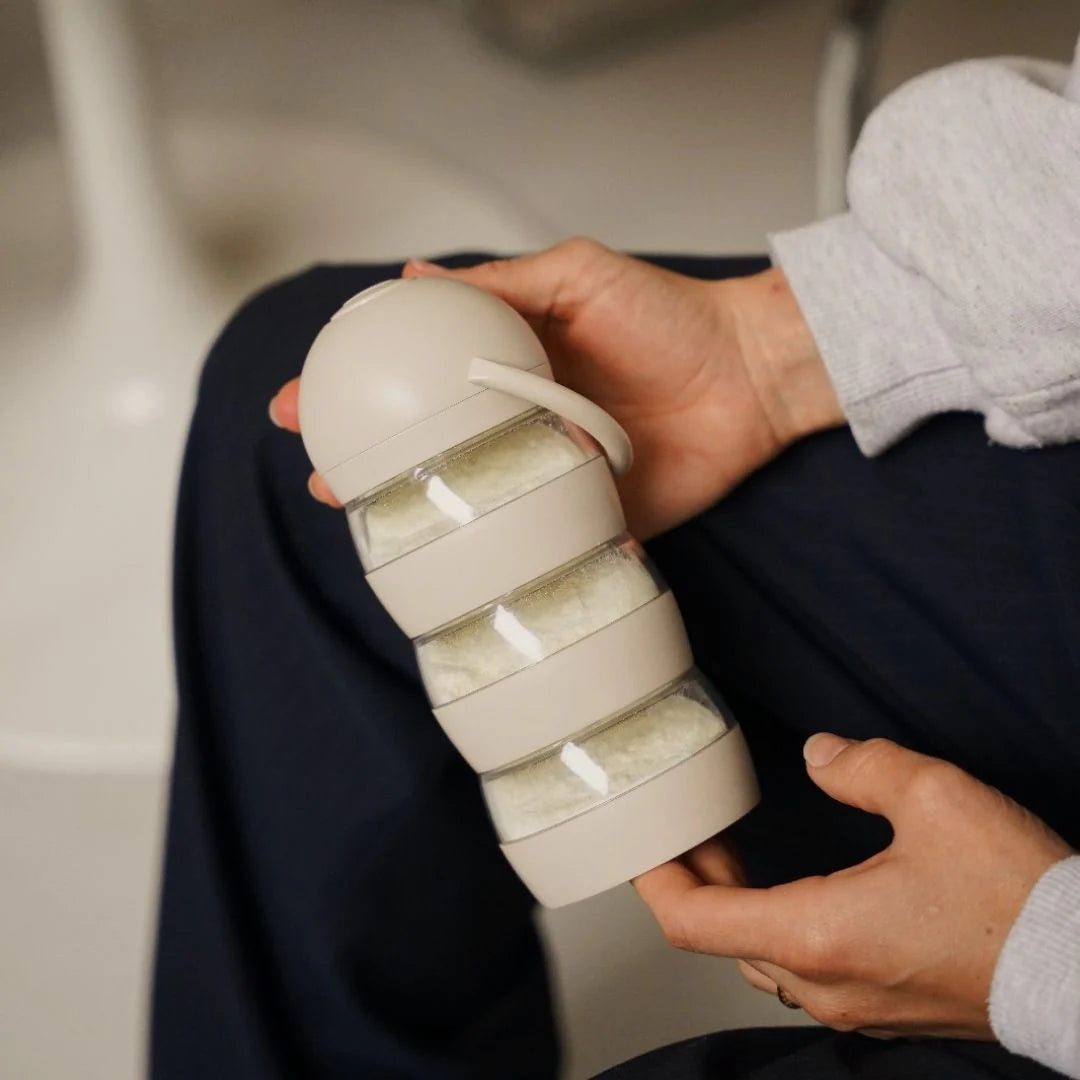 - Grande capacité et compartiments hermétiques : Les 3 compartiments sont 100% hermétiques et peuvent contenir chacun jusqu’à 11 doses de lait en poudre.