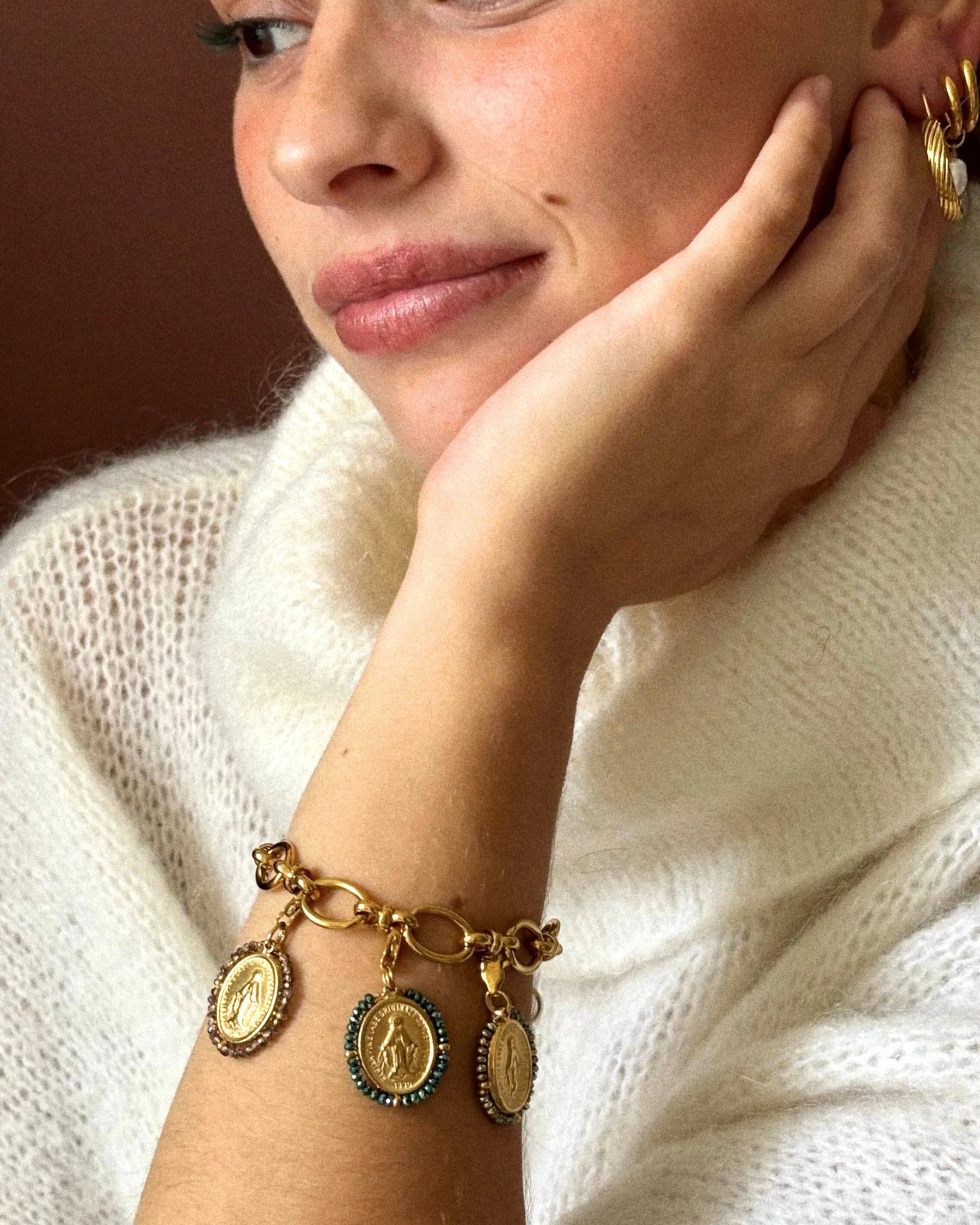 Nos iconiques médailles Santa Maria sont désormais disponibles en pendentif clipsable au grès de vos envies. Composez le bijou de vos rêves avec nos charms pour bracelets et colliers.