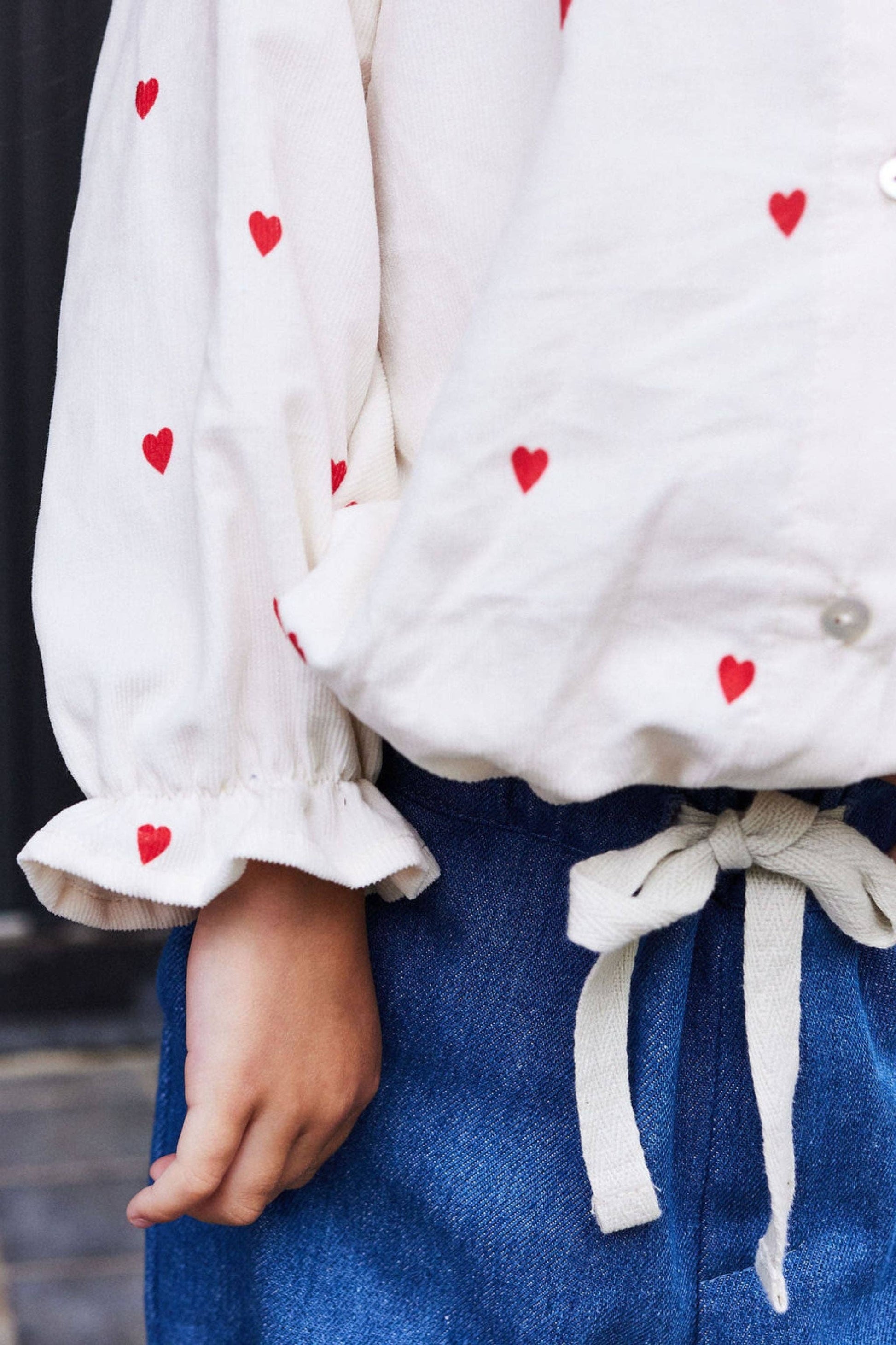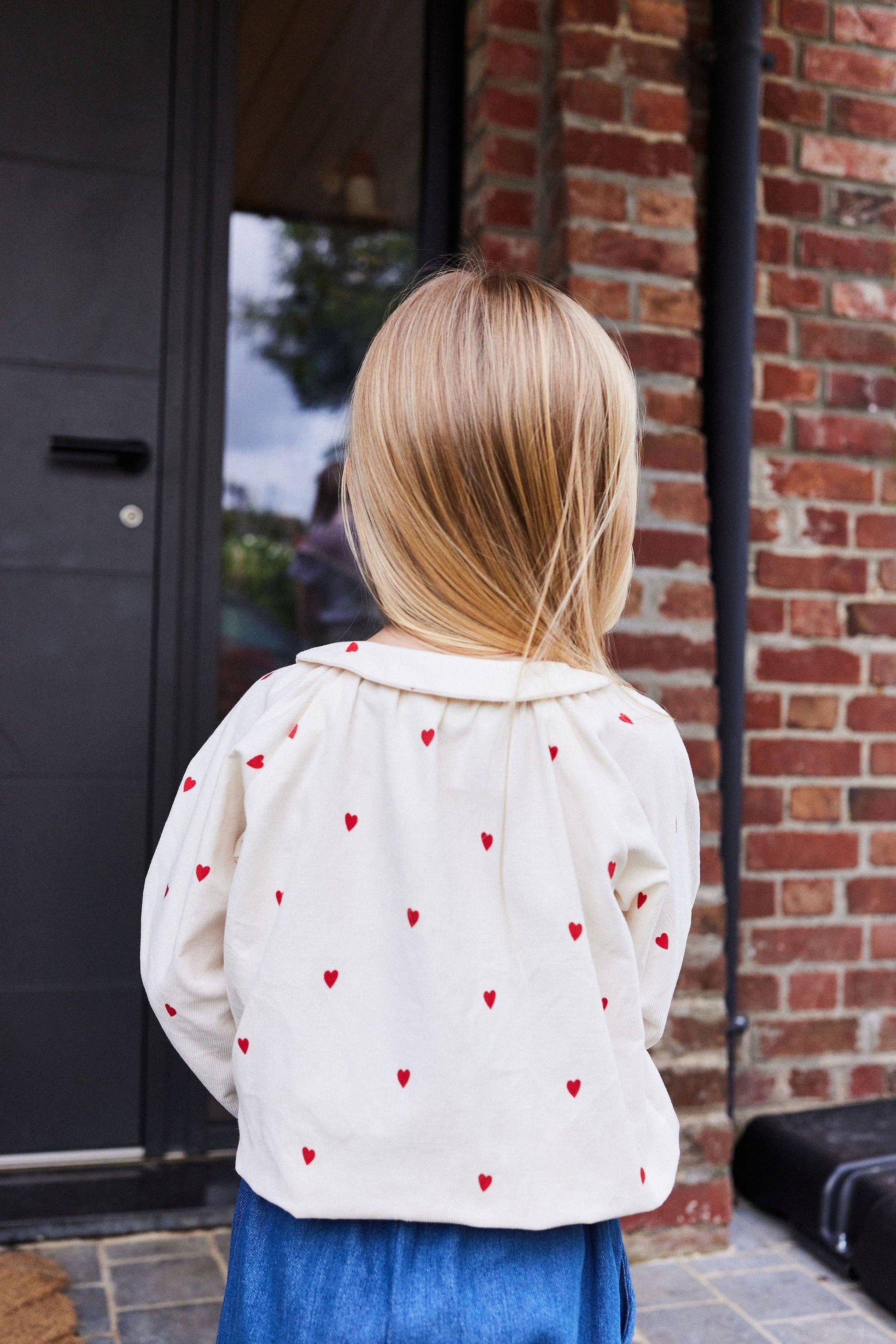 Cette blouse est la nouvelle pièce préférée de vos petites filles ! Version coeur rouge
