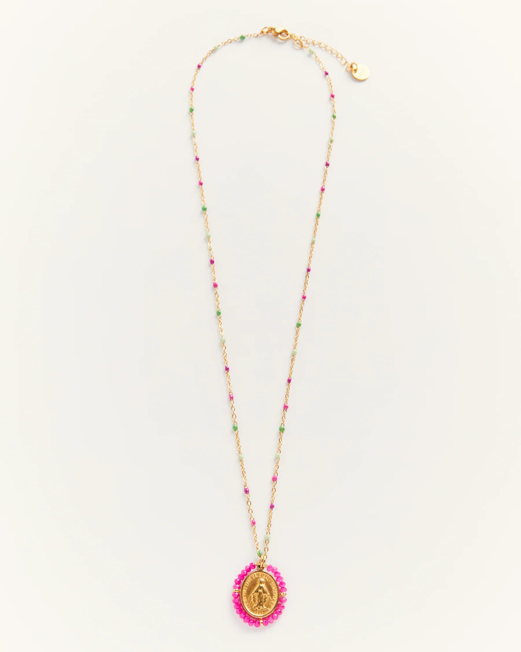 Aussi doux qu'une délicieuse glace, notre collier Cassis Basilic est le bijou parfait pour l'été. Une chaîne perlée avec un médaillon coloré à porter partout.