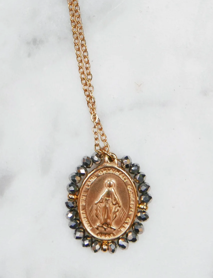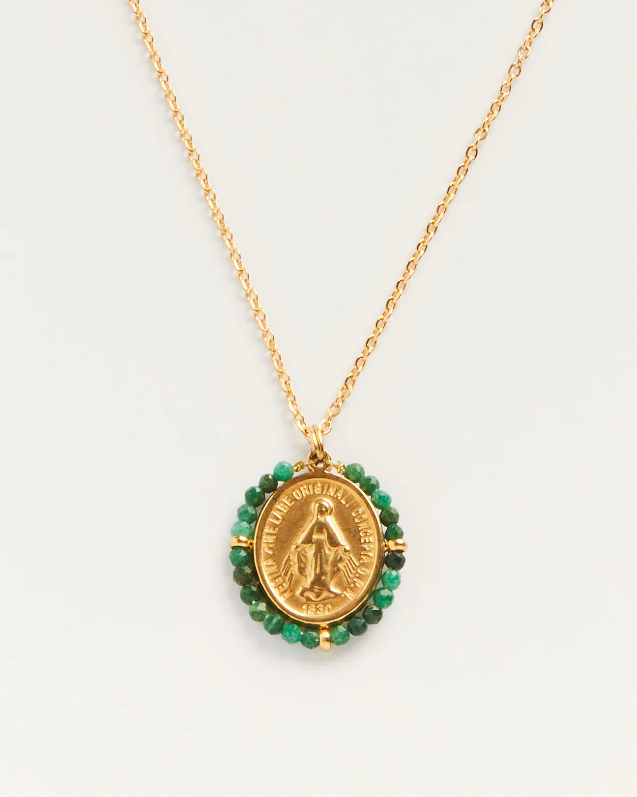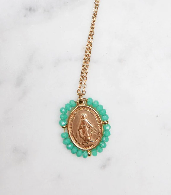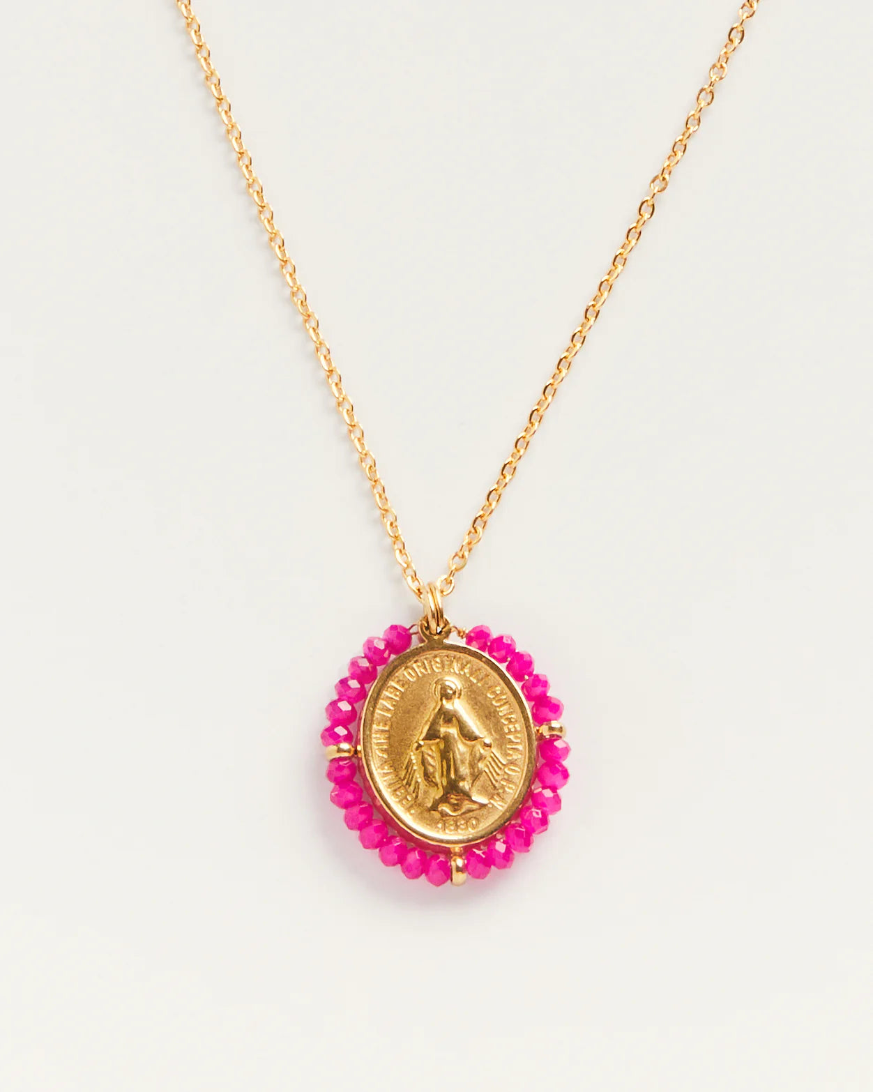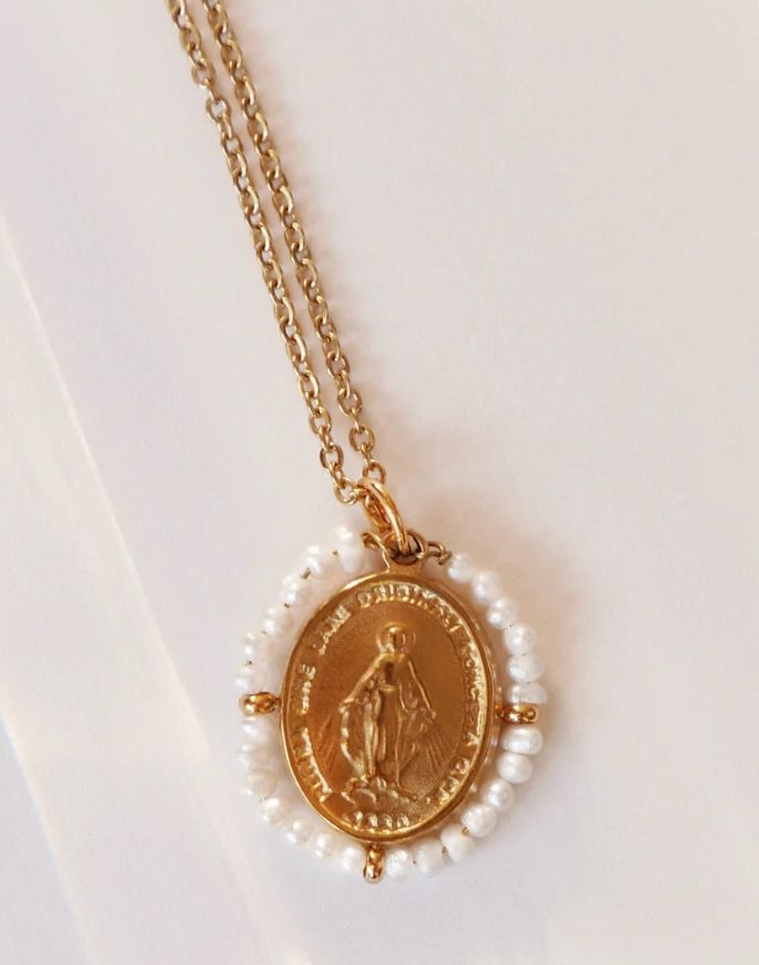 La médaille Santa Maria est montée sur une délicate chaine en acier inoxydable doré. Le bijou ne décolore pas même sous l'eau. Votre médaille ne vous quittera plus.