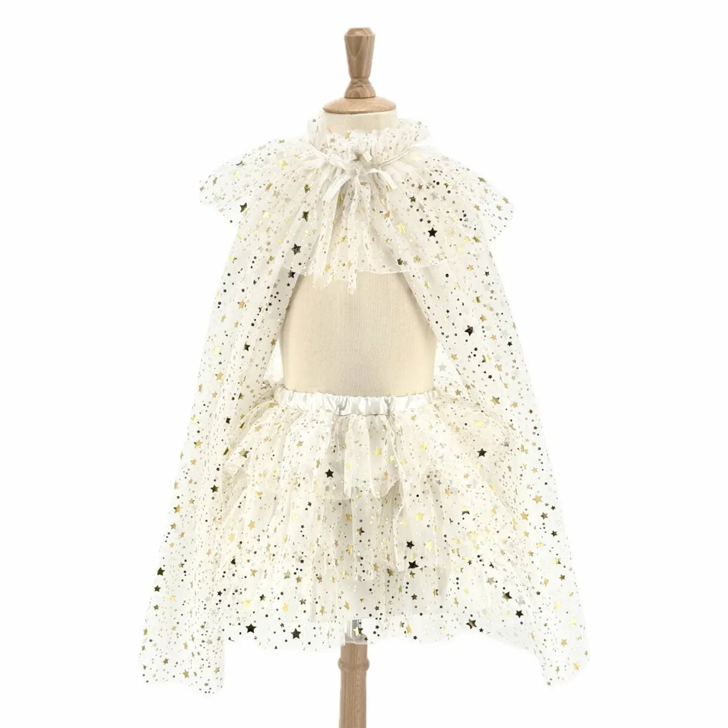 Le set Tutu et Cape Loane couleur Ivoire est composé d’un tutu en tulle avec impression d’étoiles dorées et d’une cape assorties. Taille unique : 3 – 7 ans. Longueur cape : 70 cm