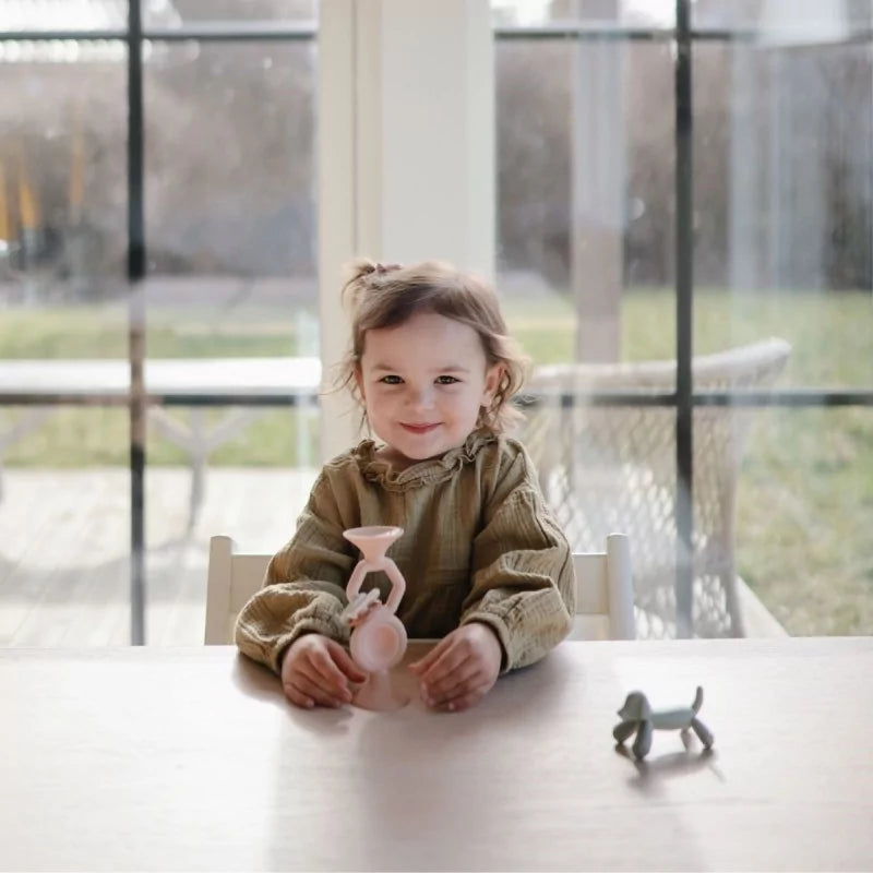Le jouet crée une expérience sensorielle dynamique et stimule l'exploration et l'interaction. La cloche en silicone peut être enfoncée et sortie pour une stimulation tactile et des sons satisfaisants, ajoutant ainsi une dimension supplémentaire à l'heure de jeu.