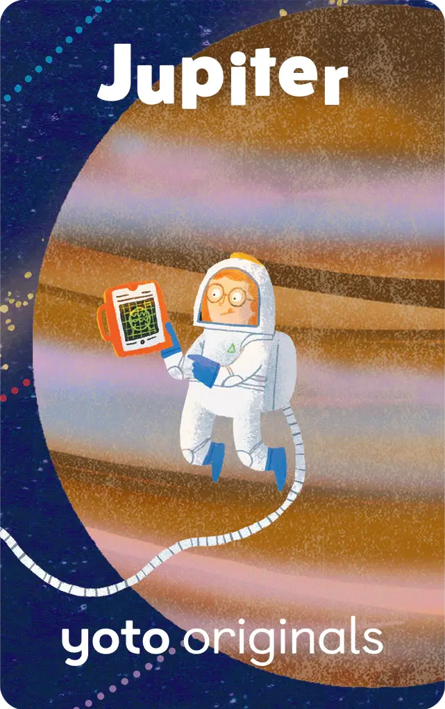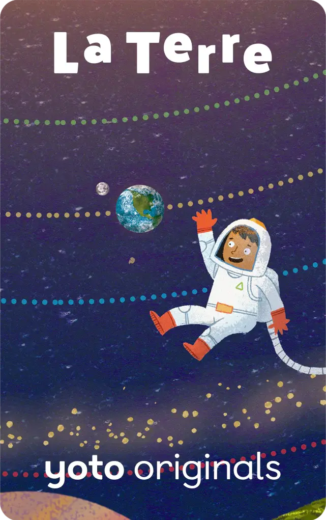 Yoto dit : Suivez Chloé et Malick dans une chasse au trésor spatiale autour des huit planètes du système solaire.