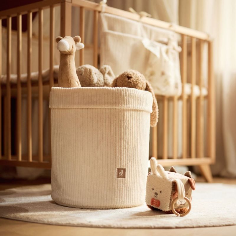 Avec ses dimensions généreuses et son tissu côtelé doux, ce grand panier est idéal pour organiser toutes les affaires de bébé sans compromettre le style de la chambre. Pyjamas, couvertures, langes ou jouets y trouvent parfaitement leur place. Le tissu côtelé Cloudy, à la fois moderne et chaleureux, s’intègre harmonieusement dans un univers doux et tendance.