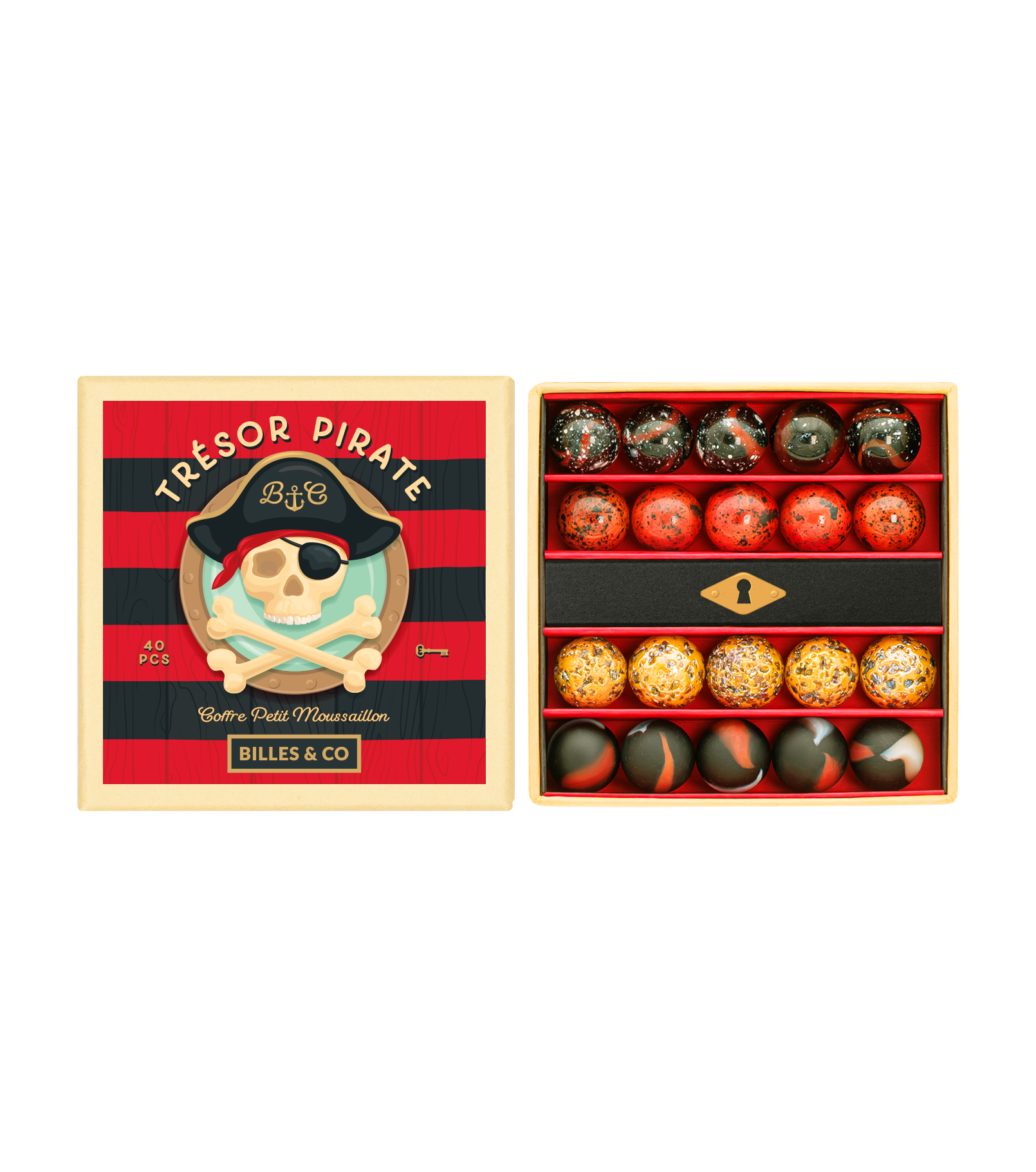 Les jeunes moussaillons ne pourront pas se passer de ce nouvel assortiment en rouge, noir et doré, avec un véritable trésor caché dans le coffret. Un butin récolté par les flibustiers et les corsaires de nos rêves d’enfant, à jouer et à conserver précieusement. A l’abordage !
