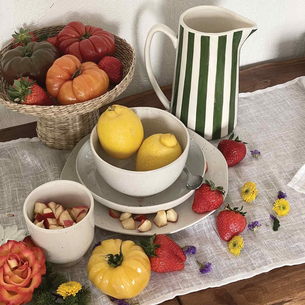 Invitez une ambiance ensoleillée à votre table avec nos pichets à rayures en céramiques. Inspirés de l'élégance décontractée de la Riviera, ces pichets aux couleurs modernes apportent une touche estivale et chic à votre décoration.
