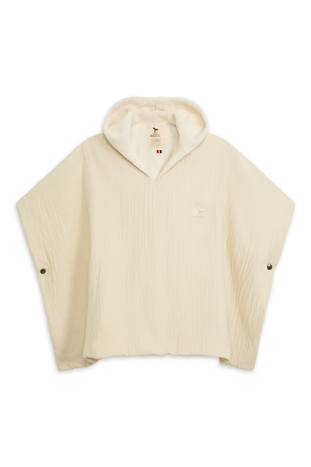 Très simple à enfiler, il est doté de pressions sur les côtés et d'une grande capuche idéale pour les cheveux mouillés.