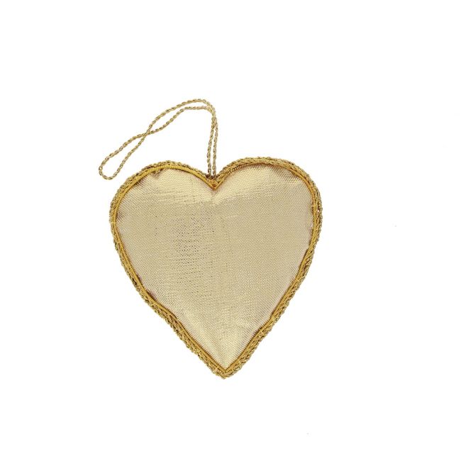 Réalisée artisanalement en Inde, cette décoration en tissu est enrichie de broderies précieuses en fils dorés et scintillants. Son rembourrage en polyester lui confère une belle épaisseur et un effet en relief, idéal pour sublimer votre sapin de Noël ou une suspension murale.