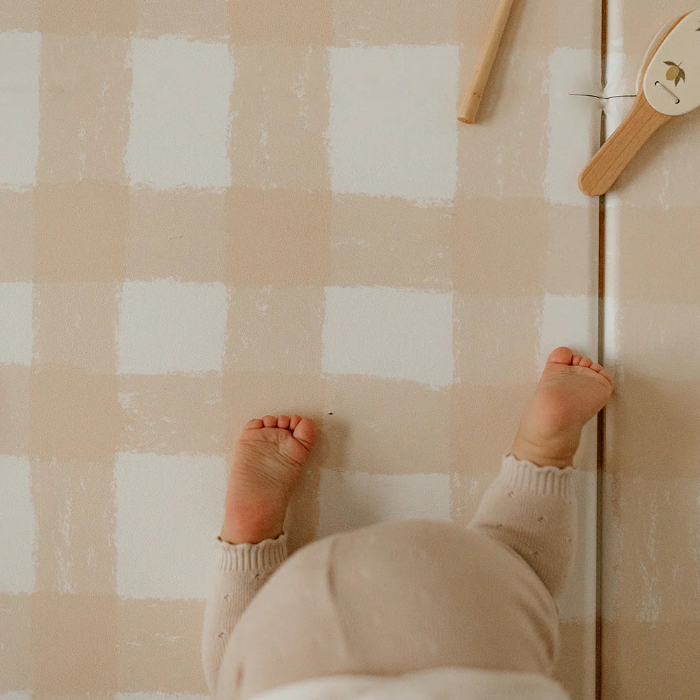 Un vichy tendance et des pêches minimalistes... Ce Tapilou mélange tradition et modernité. Il s’adapte à votre quotidien : déplié pour jouer, plié en pouf, il suit bébé partout et se fond dans votre déco. Le parfait mix entre style et praticité